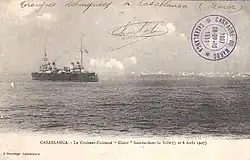 A postcard showing Gloire bombarding Casablanca, Morocco, in 1907