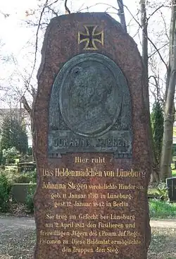 - Johanna Stegen* verehelicht Hindersin (1793–1842), "the heroine of Lüneburg", medallion by Albert Moritz Wolff, Grablage: VIII-5-23+24.