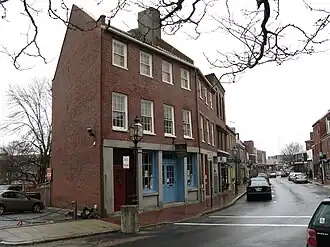 • 69–71 Main Street, a three-story four wide block with Federalist styling, was built for Aaron Day. A hat maker operated on the ground floor, and apartments were above.[2]