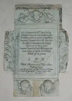 English Baroque monument in St James' parish church to John and Jordan Thorpe, two brothers who studied at Trinity College, Oxford and predeceased their father