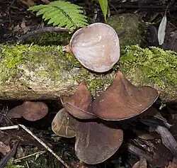 Named 'wood ear' because they grow on wood like a rubber ear, lacking both a stipe and gills. This species is common on dead wood and is found in spring, summer, and autumn and can grow from 15 to 20 cm in diameter.[4] Records of moteatea (Māori chants) suggest this food was only eaten in times of famine, as it doesn't have much flavour. Today they are cooked with other food that will give it flavour.[4]