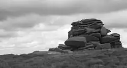 Standing above the headwaters of the River Tavy, Fur Tor {UK National Grid reference 588831} is described by William Crossing as "perhaps the grandest of the Dartmoor tors, for while there are some that rise much higher above the ground than the loftiest of the piles here, and also exhibit finer rock masses, there is none that covers so large an area, or whose surroundings are of the desolate character as those upon which this lonely tor looks down."[1]