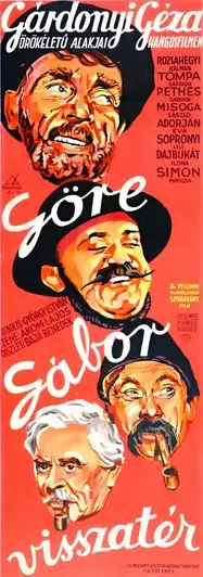Gábor Göre Returns (Hungarian: Göre Gábor visszatér) is a 1940 Hungarian comedy film directed by István György and starring Sándor Tompa, Sándor Pethes and László Misoga.[1] The film's sets were designed by the art director Benedek Baja.
