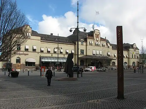 Gävle Central Station is located in the city of Gävle, Sweden, at the East Coast Line and the endpoints of the Bergslagen Line and the Northern Main Line. Fast long-distance trains stop here, and also regional trains in multiple directions. The station is located around 300 metres (980 ft) from the traditional midpoint of the city. Regional and city buses stop nearby. The Swedish Railway Museum is located in the southern part of Gävle.