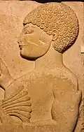 In terms of iconography, the gifts presented by the figure are "western Anatolian and Greek in origin", however, the clothing he wears are "clearly of Persian influence".[3] The work is unique as it is, to date, the only known Anatolian-Persian sculptural work discovered in Anatolia depicting an African figure.[3] The work testifies to the "multiracial social structure of the Lydia region during the late sixth to early fifth century BC".[3] The stele is located in the Akhisar Museum.[2]