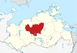 Güstrow (German pronunciation: [ˈɡʏstʁoː] ) is a former district in Mecklenburg-Vorpommern, Germany. It was bounded by (from the north and clockwise) the districts of Bad Doberan, Nordvorpommern, Demmin, Müritz, Parchim and Nordwestmecklenburg. The district was disbanded at the district reform of September 2011. Its territory has been part of the district of Rostock since.