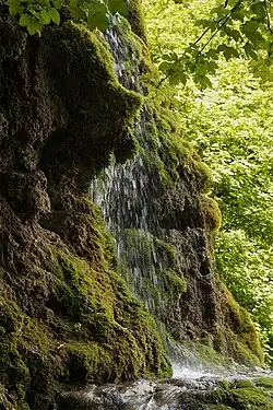 The site of the monastery next to the Güterstein waterfalls attracted exploitation because of the presence of tufa, which was quarried, and also because of the availability of spring water, which is used for the stud farm that now stands near the site.