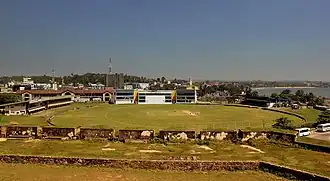 Galle International Stadium (Sinhala: ගාල්ල ජාත්‍යන්තර ක්‍රිකට් ක්‍රීඩාංගණය, Tamil: காலி பன்னாட்டு அரங்கம்) is a cricket stadium in Galle, Sri Lanka, situated near Galle Fort and fringed on two sides by the Indian Ocean. It is considered to be one of the most picturesque cricket grounds in the world. Before being brought up to international cricket standards, it was known as 'The Esplanade', and is the home ground of the Galle Cricket Club.[1] This Stadium is identified as one of the luckiest venues for the Sri Lankan national cricket team.[2][3]