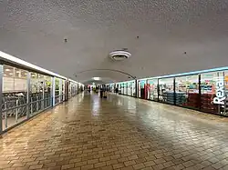 The stores that remain in the portion of the mall left standing include FreshCo supermarket (formerly Price Chopper), Rexall, Planet Fitness, TD Bank, F45 Training and PetValu. For about two decades the mall was home to a Zellers discount department store. The Dollarama store closed in 2020 and the standalone McDonald's immediately adjacent to Dufferin Street is actually an outparcel tenant of the centre; it was demolished in 2022.[2] Planet Fitness announced the opening of a 20,000-square-foot (1,900 m2) gym and fitness centre at the mall in December 2014. It was their first Canadian location.[3]