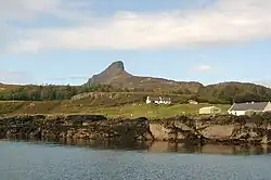 ![]() The western side of Galmisdale with An Sgurr in the distance | |