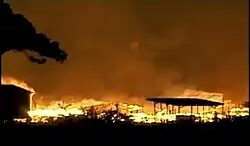 The camp was attacked the same year by Russian peacekeepers, who also took Georgian policemen hostage.[5][19] It was one of the incidents that led to mounting tensions between Georgia and Russia in the run-up to the Russo-Georgian war in the summer of 2008, and it also led Georgia to step up its efforts to internationalize peacekeeping.[20][21] On August 18, 2008, the camp was set on fire and destroyed by Abkhaz militias, who occupied the village for 4 weeks after the official end of the 2008 war.[22][9]