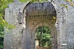 The Gate of Bibarrambla or Bibrambla (Spanish: Puerta de Bibrambla), also known as Puerta del Arenal or Arch of the Ears (Spanish: Arco de las Orejas), was a former city gate in Granada, Spain.[1][2] Built in the 14th century during the Nasrid period, it stood at the corner of a public square of the same name, Plaza de Bibarrambla. The gate was demolished between 1873 and 1884. In 1935, it was partially reconstructed by Leopoldo Torres Balbás in the woods outside the Alhambra, where it stands today.