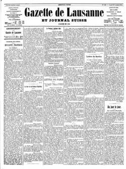 1. ^ a b c d e Bollinger, Ernst: Gazette de Lausanne in German, French and Italian in the online Historical Dictionary of Switzerland, 15 August 2005.
