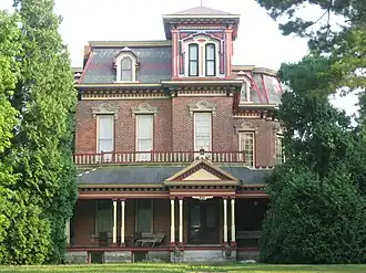Gen. Asahel Stone Mansion is a historic home located at Winchester, Randolph County, Indiana. It was built in 1872, and is a 2+1⁄2-story, Second Empire style brick dwelling. It has a mansard roof and wraparound porch. It features a three-story, square tower with a low hipped roof.[2]: 2