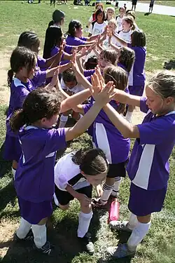 Messner and Bozada-Deas[7] studied yearbooks from a group of 538 youth baseball and softball teams and 1,490 from the American Youth Soccer Organization (AYSO) in 1999 to 2007. Only 13.4% of the teams had women coaches on the soccer team and only 5.9% of the team's management in baseball and softball were women. Team parents, whose sole duty is to take care of snacks, make phone calls to organize team events, hold fundraising, and providing support for the team players are predominantly filled by women.[8] Men prefer not to volunteer for team parent positions due to the responsibilities placed on them compared to those of the coach. Women's roles in sports are to hold the position of team parent, while men are usually head coach or assistant coach. Team parents are often labeled "team mom", making this position more likely for female parents than male parents.[2]