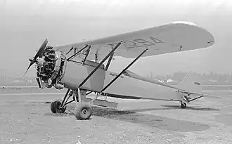 The P-2-S is a high-wing, conventional landing gear equipped, parasol-wing aircraft powered by a 100 hp (75 kW) Kinner radial engine.[4]