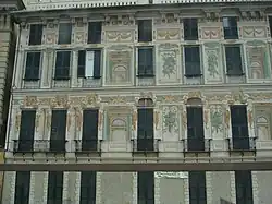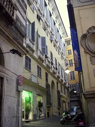 Today, Palazzi dei Rolli as a collective name represents the set of the most prestigious palaces of the historical center of Genoa, especially along the so-called Strade Nuove, the "New Streets" built by the Genoese aristocracy at the peak of Genoa's economic power in the 16th and 17th century (Via Giuseppe Garibaldi, formerly Strada Nuova or Via Aurea, Via Cairoli, formerly Strada Nuovissima, and via Balbi, now the home of the University of Genoa).[3]
