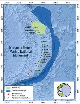 The Marianas Trench, with some of deepest ocean on the planet wraps around the Northern Mariana's and is National Marine Monument since 2009