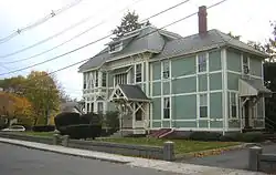 The George A. Barker House is a historic house located at 74 Greenleaf Street in Quincy, Massachusetts. Built in the late 1870s for the son of a local granite quarry owner, it is a good local example of Queen Anne architecture with Stick style details. The house was listed on the National Register of Historic Places on September 20, 1989.[1]