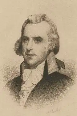 Despite American grumbles over the lack of a British envoy since the peace treaty concluded the American revolution in 1783, the decision for the British was by no means a simple one. The Articles of Confederation lacked both a fixed seat of government and single leader to accredit an envoy, and few qualified diplomats desired the post and its yearly salary of £2,500.[2] David Hartley, himself approached for the position, recommended his former secretary Hammond to Charles Jenkinson, who in turn passed on the name to newly appointed Foreign Secretary William Grenville.[2] Hammond was soon given the job, boarded a ship for Philadelphia in September 1791 along with Edward Thornton, secretary of legation,[3] and arrived five weeks later on 20 October.[2]