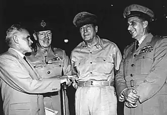 Lieutenant General Sir Horace Robertson (second left), General Douglas MacArthur (second right) and Air Marshal Jones (far right) in Japan after the outbreak of the Korean War in 1950