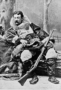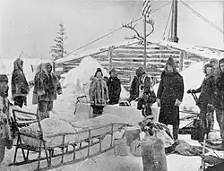 On 11 August 1885, Stoney located a suitable place for their winter camp a short distance upstream from present-day Ambler, Alaska. He called the site Fort Cosmos after a club in San Francisco and had a well-insulated log house built.[5] They lived there from 25 September 1885 to 15 June 1886 while exploring in all directions. In addition to the Kobuk River, they explored the Ambler River (a tributary of the Kobuk), the Selawik River valley to the south and the Noatak River valley to the north. From 26 December 1885 to 25 February 1886, A. V. Zane made an overland round trip between Fort Cosmos and St. Michael, Alaska with one sailor, an interpreter and two natives. From 12 April to 16 July 1886, W. L. Howard traveled north from Fort Cosmos to Point Barrow with two sailors, an interpreter and two natives.[8][9]
