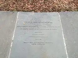 The memorial commemorates the contributions of Mason, a Founding Father who wrote the Virginia Declaration of Rights, served as a delegate to the 1787 Constitutional Convention in Philadelphia, and created much of the language, inspiration, and groundwork for what became the United States Bill of Rights. Mason, an Anti-Federalist, did not sign the United States Constitution because it did not abolish the slave trade and because he did not think it had necessary protection for the individual from the federal government.[2] He was sometimes known as the "reluctant statesman", which was also the title of a 1980 biography written about him by Robert A. Rutland.[3]