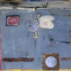 After teaching at the California College of the Arts, and Stanford University, he was appointed a full professor at the University of California, Berkeley in 1964.[2] By 1958, he was experimenting with methods and materials, producing what appeared to be the first color lithographs by a West Coast Abstract Expressionist that were widely shown. They were included in 13 exhibitions in 1958 alone.[3] In 1960, Willem de Kooning visited Miyasaki's studio to try his hand at lithography. De Kooning, with the help of Miyasaki and Nathan Oliveira, created at least two abstract lithographs.[4]