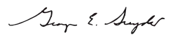 George Elmer Snyder (January 12, 1929 – April 5, 2017[1]) was an American politician, businessman, author, inventor, and marketing professional. He served in the Maryland State Senate from 1959 to 1974. Snyder served as the Majority leader of the Maryland Senate and was the Chairman of the Maryland Senate Finance Committee from 1971 to 1974.
