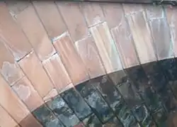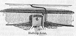1830 also saw the grand opening of the skew bridge in Rainhill over the Liverpool and Manchester Railway. The bridge was the first to cross any railway at an angle.[20] It required the structure to be constructed as two flat planes (overlapping in this case by 6 ft (1.8 m)) between which the stonework forms a parallelogram shape when viewed from above. It has the effect of flattening the arch and the solution is to lay the bricks forming the arch at an angle to the abutments (the piers on which the arches rest). The technique, which results in a spiral effect in the arch masonry, provides extra strength in the arch to compensate for the angled abutments.[21]
