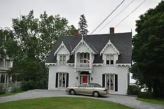 The George Washburn House is a historic house at 772 River Road in Calais, Maine. The 1+12-story wood-frame house was built c. 1855 by George Washburn, and is one of a trio of Gothic Revival houses standing in a row. One of the others was built by George Washburn's brother Charles; the third, which is the most elaborate, was built by Alexander Gilmore. Nothing of substance is known of the Washburns, or of who built their houses.[2] The George Washburn House was listed on the National Register of Historic Places in 1982, at which time its address was 318 Main Street.[1]