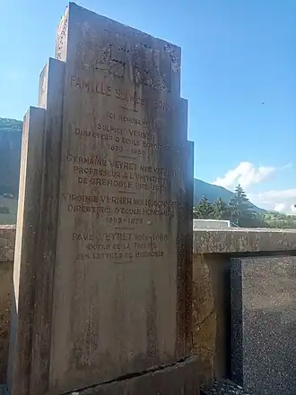 She is closely associated with the influence of the Institut and of the Revue de Géographie Alpine[11][6][2] and was a member of the Grenoble group of the Association française des femmes diplômées des Universités[12][13] She died of a heart attack in Grenoble[1] and is buried in the cemetery in her birthplace.[2]