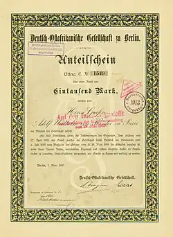 | Fate | Defunct following dissolution of German colonial empire after World War I |