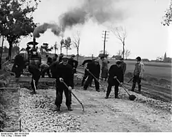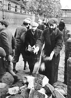 The Polish population of Bydgoszcz also faced a wave of minor harassments. In October 1939, shops and offices were ordered to serve Germans first, and queuing in front of shops was prohibited (effectively targeting only Poles). In the same month, Poles were ordered to remove radio antennas from their homes.[101] They were also subjected to forced labor, especially unemployed intellectuals. At the end of October 1939, Kampe organized a disciplinary labor camp for Polish youth in barracks on Dwernickiego Street.[102] Only Poles born within the borders of the German Empire found themselves in a slightly better situation. They were allowed, among other things, to join the German Labour Front, and their children were allowed to attend elementary schools.[107]