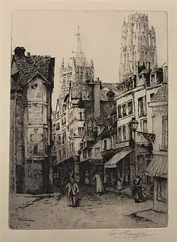Gertrude Ellen Hayes (1872–1956) was a British artist known for her etchings, watercolour paintings, and repoussee metal work.[1] Her etchings often featured architectural scenes of buildings or streets.[2]