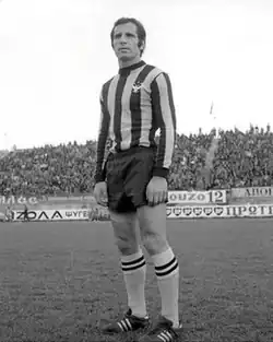 He made his debut with the yellow-blacks on 21 November 1971, in a 4–0 victory over Iraklis at home.[3] He played for AEK for three seasons, while he also managed to make 2 appearances in the UEFA Cup. One on 27 September 1972 in the away 1–1 draw against Salgótarján[4] and the other in the 3–0 against Liverpool at Anfield, on 24 October 1972.[5]