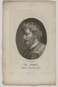 Giovanni Andrea dell'Anguillara (c. 1517c. 1570) was an Italian poet. His verse translation of Ovid's Metamorphoses (the complete version was published in 1561) was often reprinted and has been highly praised by italian critics; a partial translation of Virgil's Aeneid enjoyed less success. Anguillara also wrote the comedy Anfitrione, and the tragedy Edippo, based on Seneca's Oedipus and on Sophocles' Oedipus Rex.[1]