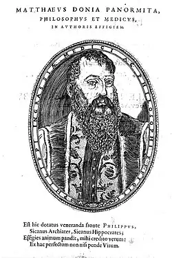 In 1556 he was recruited to Palermo as lecturer of medicine and anatomy, working at the monastery of Saint Domenicus. The following year he was asked by the Sicilian Senate to help the government manage an outbreak of pandemic influenza that arrived in Sicily through Palermo. He proposed the a system for managing contagious fevers would aid in epidemic responses.[3] His fame increased considerably in 1562 when he was able to heal a persistent wound of the Duke of Terranova. In 1563 he became Protomedicus (chief medical administrator) of Sicily. In this capacity, he emphasized the continuing education of physicians and insisted that medicine be treated as a scientific discipline that collected objective knowledge to ensure optimal treatments.