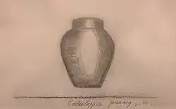Hopper first began signing and dating his drawings at the age of 10. Among the earliest of these drawings are charcoal sketches of geometric shapes, a vase, bowl, cup, and boxes.[10] The detailed examination of light and shadow that continued throughout his career is already visible in these early works.[10] By his teens, he was working in pen-and-ink, charcoal, watercolor, and oil—drawing from nature while also making political cartoons.[11] In 1895, he created his first signed oil painting, Rowboat in Rocky Cove, which he copied from a reproduction in The Art Interchange, a popular journal for amateur artists. Hopper's other earliest oils, such as Old ice pond at Nyack and his c.1898 painting Ships, have been identified as copies of paintings by artists including Bruce Crane and Edward Moran.[12][13]