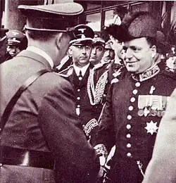 Giuseppe Mastromattei meeting Adolf Hitler at the Brenner Pass in May 1938, with Heinrich Himmler in the background