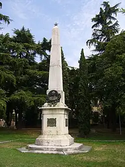 65. ^ On the facade of "Casa Zocca" in Monzambano, near the bridge, a plaque was placed in 1901 with the following inscription: "Here, on June 24, 1866, while fighting for Italy at Villafranca, at Custoza, on the Tione and Monte Vento, General Giuseppe Salvatore Conte Pianell commander of the 2nd Italian Division, placed to observe toward Peschiera, with ingenious martial insight and happy daring, ferried across the Mincio with part of his troops and repelled the enemy right wing on the way to Valeggio." Cf. Pianell e Pianell Ludolf, Il generale Pianell. Memorie, Firenze, 1902, p. 453.