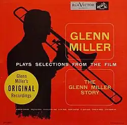 The 1954 10" album Glenn Miller Plays Selections from the film "The Glenn Miller Story" was number one for eleven weeks on the Billboard albums chart in 1954, released on LP as RCA Victor LPT 3057.[1] This collection featured the original RCA Victor, Bluebird and broadcast recordings by Glenn Miller and his Orchestra.[2]