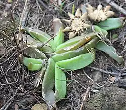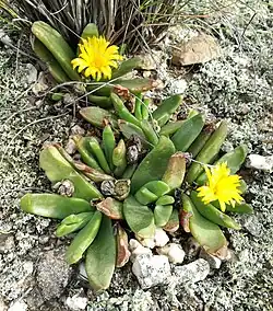 1. ^ "Glottiphyllum depressum (Haw.) N.E.Br". Plants of the World Online. The Trustees of the Royal Botanic Gardens, Kew. n.d. Retrieved June 23, 2022.