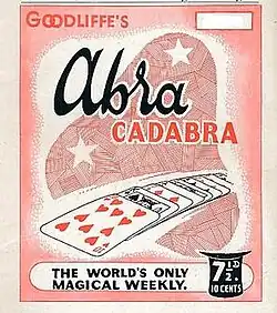 Abracadabra was a British weekly magic magazine whose publication life spanned sixty-three years. The first issue was published on 2 February 1946; the last issue was published on 28 March 2009; a total of 3,296 issues.[1]