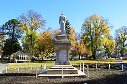 George Johnson purchased the first land in the area between 1839 and 1842 and became a central figure in the town's development. He established a branch store with a liquor licence in 1848. The 1841 census records Goulburn had a population of 655 people: 444 males and 211 females.[7] This number had jumped to 1,171 inhabitants by 1847, 686 males and 485 females.[8] It had a courthouse, police barracks, churches, hospital and post office and was the centre of a great sheep and farming area.