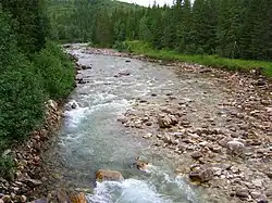 Grønfjellåga[1] (lit.'green mountain river') is a river in Rana Municipality in Nordland county, Norway. The 17-kilometre (11 mi) long river's source is the lakes Kallvatnet and Kopparvatnet. It then flows through the Grønfjelldalen valley while absorbing several smaller rivers, before it flows out as a tributary to the river Ranelva at the Dunderforsen waterfall (also called Stupforsen).[2]