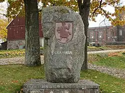 Monument with the coat of arms of Gražiškiai, unveiled in 2002