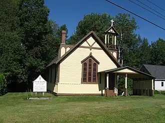 The former Grace Episcopal Church is an historic Episcopal church located on U.S. Route 1 half a mile northwest of its junction with 3rd Street in Robbinston, Maine, in the United States. Built in 1882, it is one of a series of churches along Maine's coast that was funded by summer residents, and is a fine vernacular expression of Carpenter Gothic architecture.[2] It was listed on the National Register of Historic Places in 2001.[1] It is now the museum of the Robbinston Historical Society.[2]