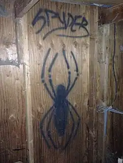 In America, graffiti was used as a form of expression by political activists, and also by gangs such as the Savage Skulls, La Familia, and Savage Nomads to mark territory. In 1969, Herbert R. Kohl published an article titled "Names, Graffiti and Culture" in The Urban Review describing how New York youth tagged their neighborhoods with their names and street numbers going back to the early 1960s.[2] Towards the end of the 1960s, the signatures—tags—of Philadelphia graffitists Cornbread, Cool Earl, and Sketch started to appear.[3][4] By the early 1970s, the New York City subway was the center for various types of innovative graffiti. Bubble lettering held sway initially among graffitists from the Bronx, though the elaborate writing Tracy 168 dubbed "wildstyle" would come to define the art.[3][5] The early trendsetters were joined in the 70s by graffitists like Dondi, Zephyr and Lady Pink.[3]