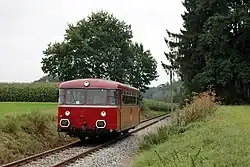The traction for the trains was first supplied by steam locomotives of class D VI and VII D, but under the direction of the Deutsche Reichsbahn they were gradually replaced by machines of class 70.0, 86 and 98.8. In its early years, DB used locomotives of class 64 and 98.3 (Glaskasten, "glass box") at times on the line. Railbuses were used on the line from 1954 and in 1962 they replaced steam locomotives for passenger traffic completely. In the following 32 years, the railbuses were used as needed in combinations of up to five vehicles, although some passenger trains were formed for a couple of years from passenger carriages and class V 100 (later class 211/212) diesel locomotives. After the replacement of steam locomotives, freight trains were also hauled by class V 60 shunting locomotives.